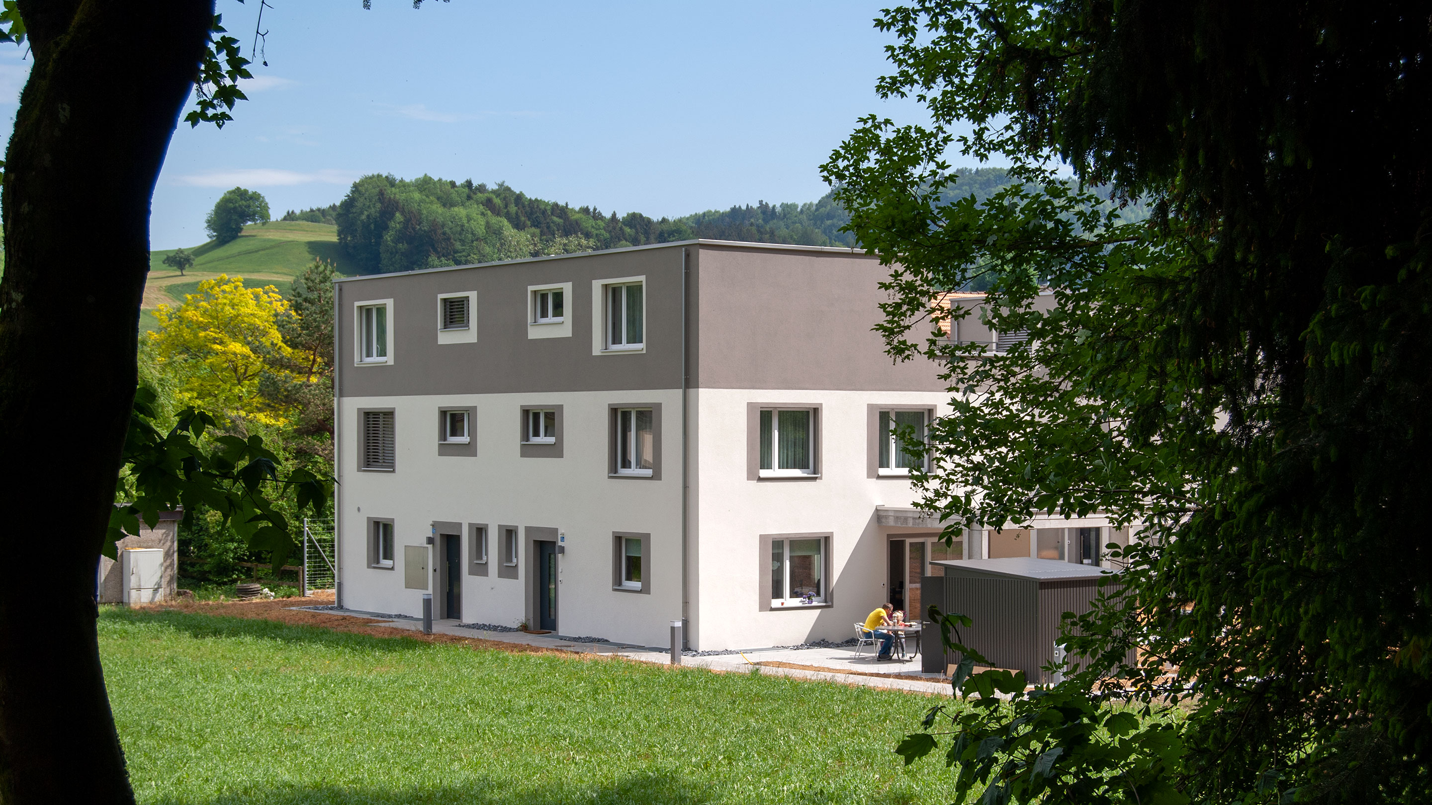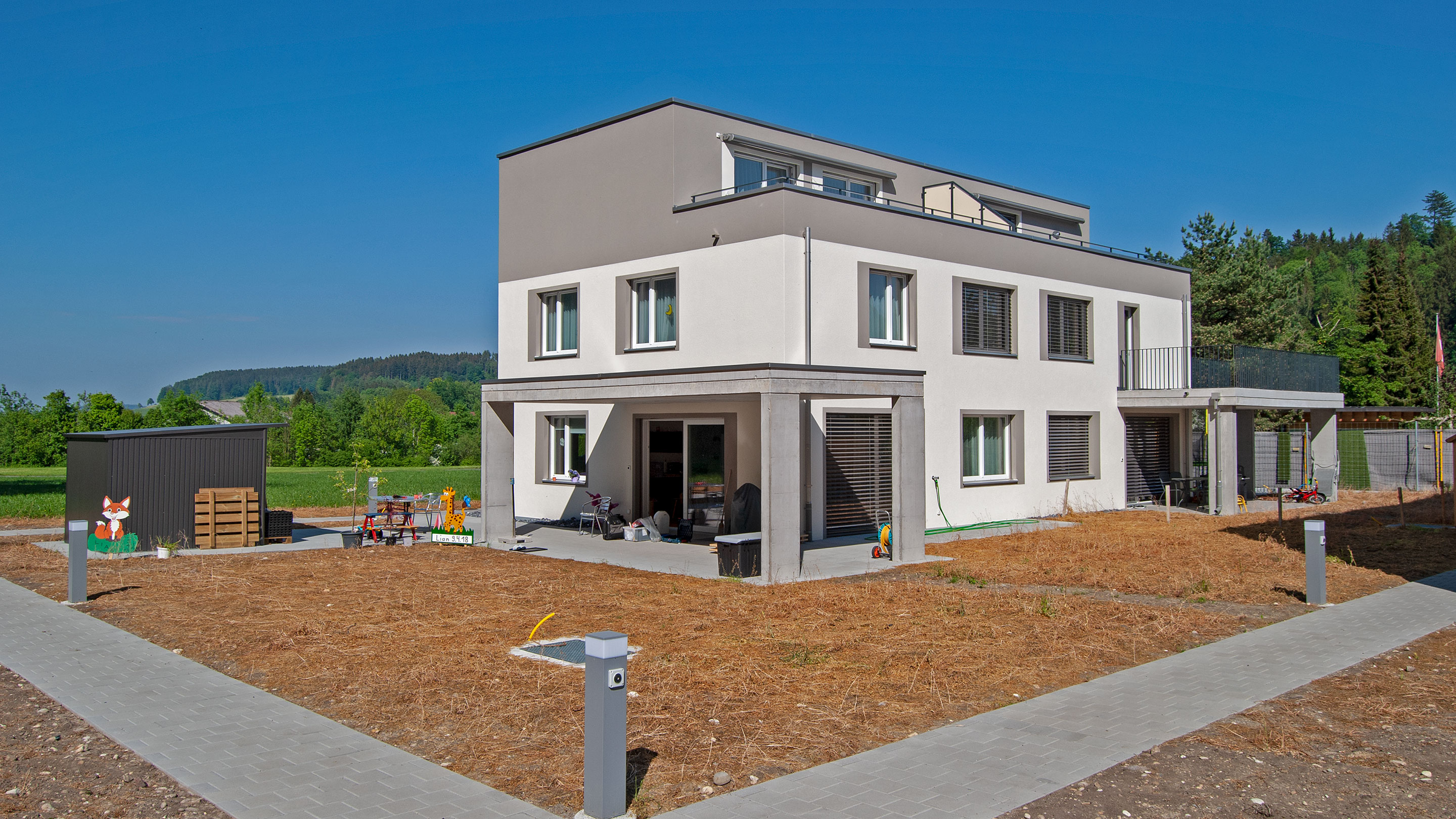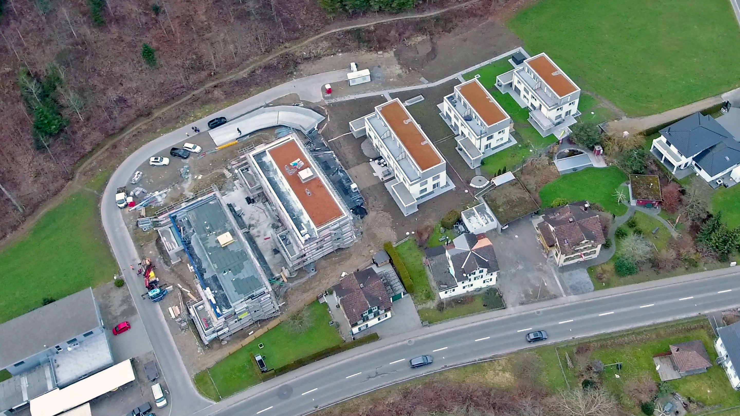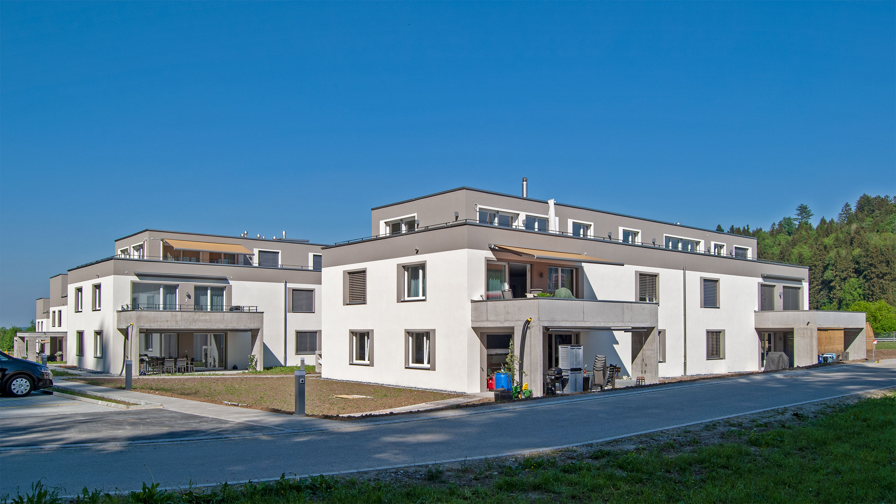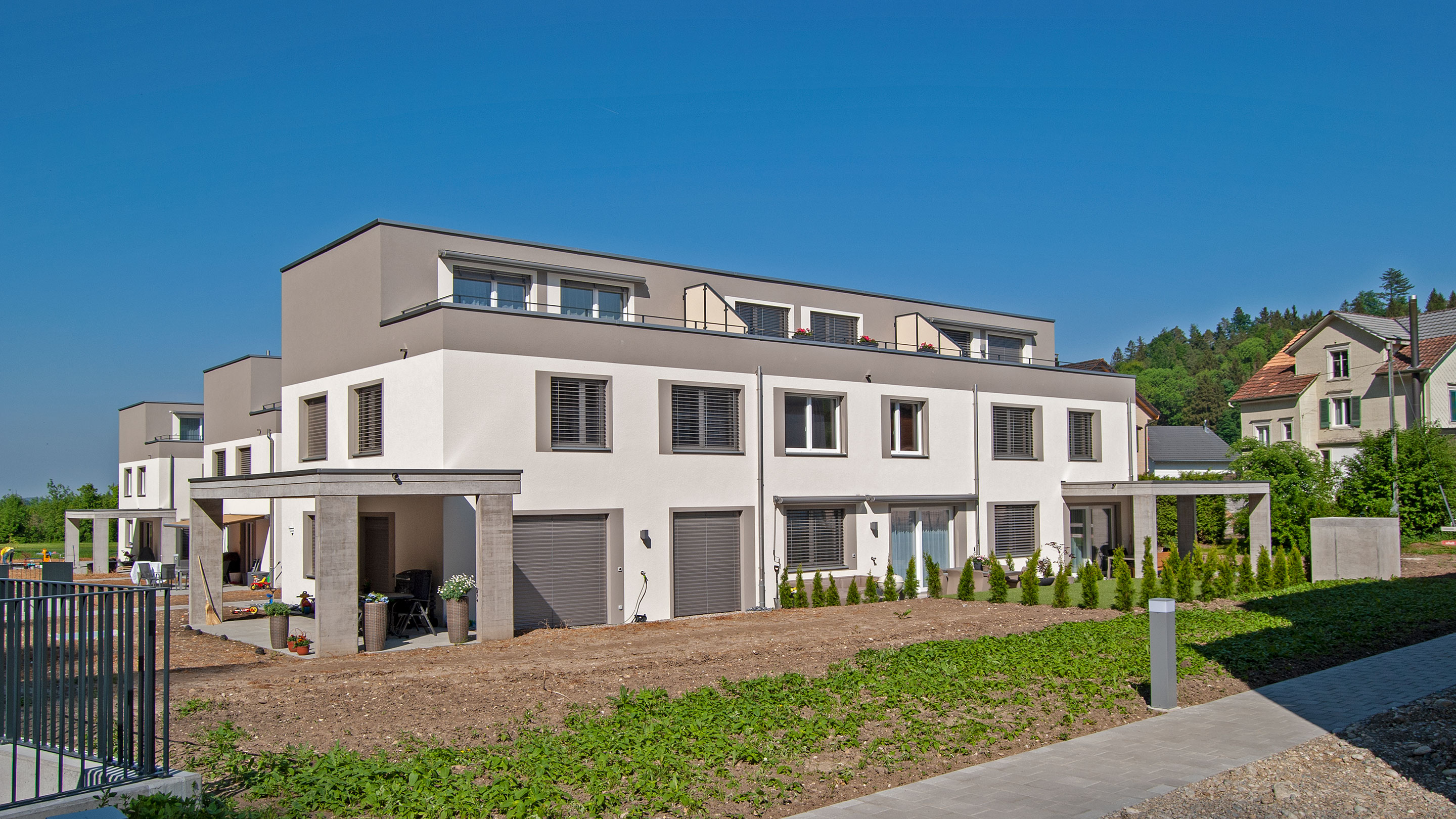 Das grosszügig bemessene Gelände von rund 6200 m² grenzt im Westen an den Wald und bietet eine unverbaubare Lage. Sämtliche Häuser und Wohnungen sind verkauft.