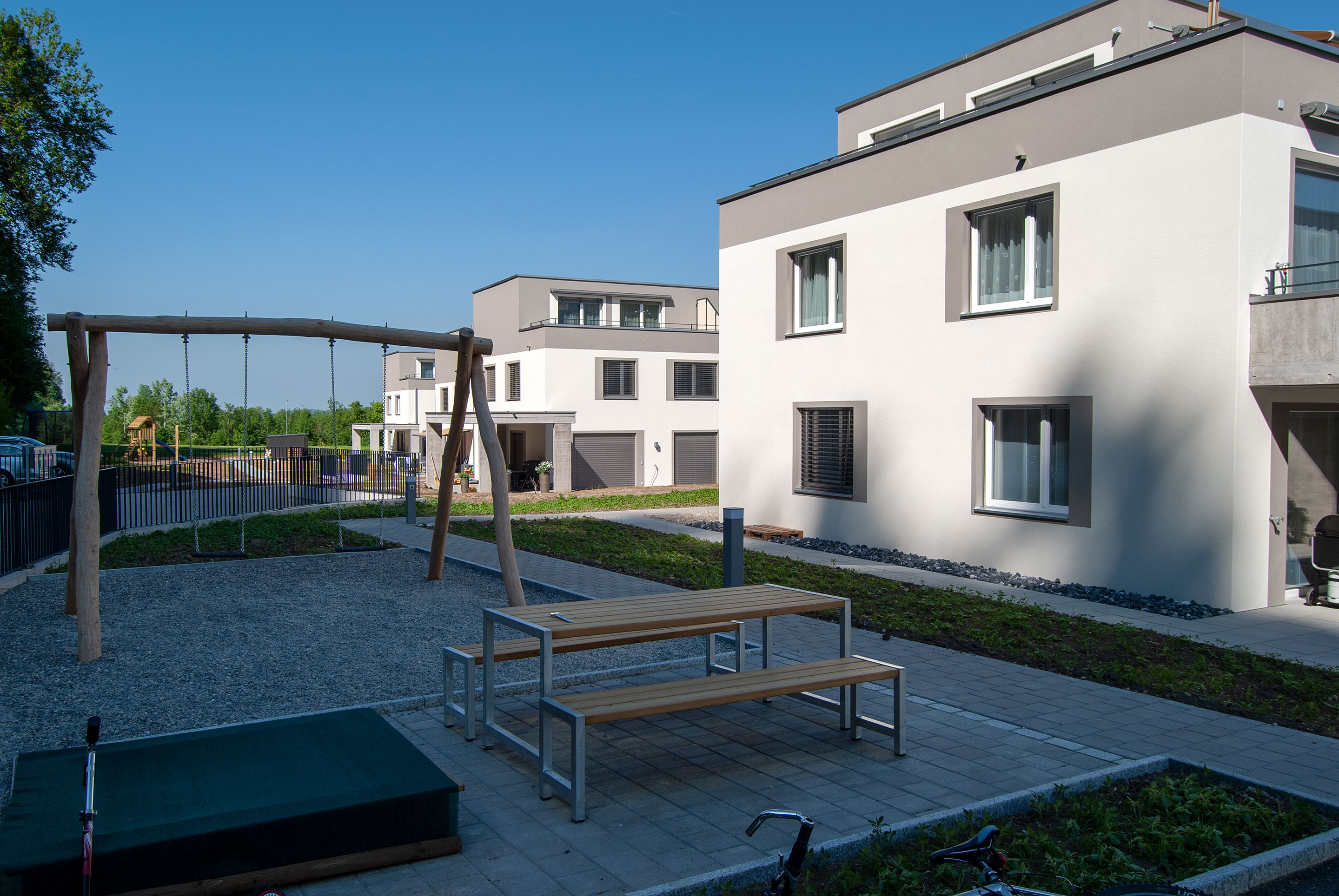 Alle Einfamilienhäuser verfügen über drei Wohngeschosse, eine grosszügige Terrasse im Dachgeschoss sowie direkten Zugang zur Tiefgarage durch den Keller. Alle Häuser verfügen über grossen Umschwung und sind – das Haus A6 ausgenommen – alles Eckhäuser.