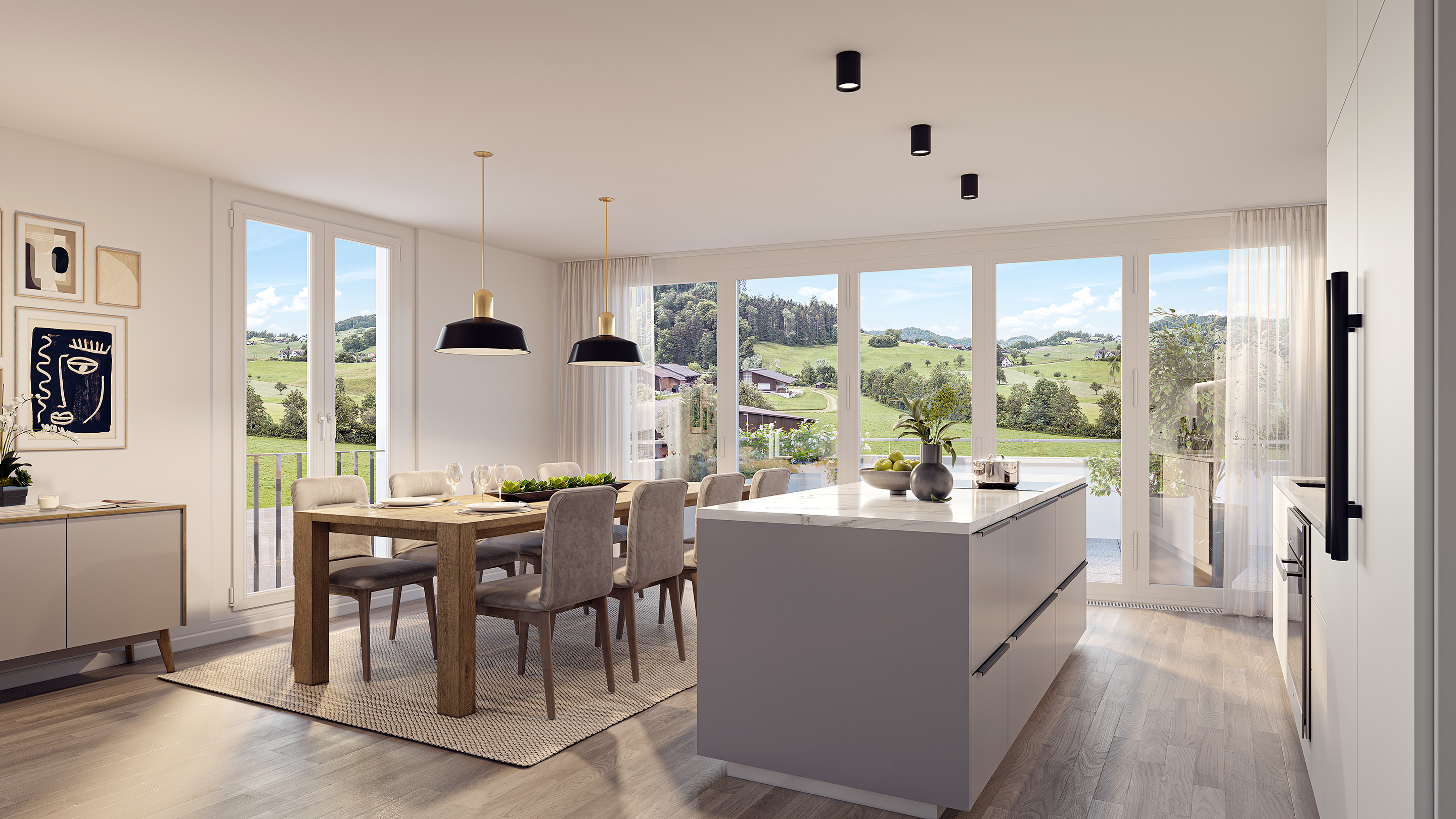 Alle Wohnungen verfügen über grosszügige Aussenräume. Sie erweitern den Wohnbereich – vor allem in den wärmeren Jahreszeiten – auf bequemste Weise. Fünf 4½-, zwei 5½- und eine 2½-Zimmer-Wohnung sind in diesem aussergewöhnlich attraktiven Projekt enthalten. Wohnungsgrundrisse und Zimmergrössen lassen sich dank nichttragenden Innenwänden optimal an die jeweiligen Bedürfnisse anpassen. Die Gliederung und Anordnung der Wohnungen gewährleisten lichtdurchflutete Räume mit optimaler Besonnung.