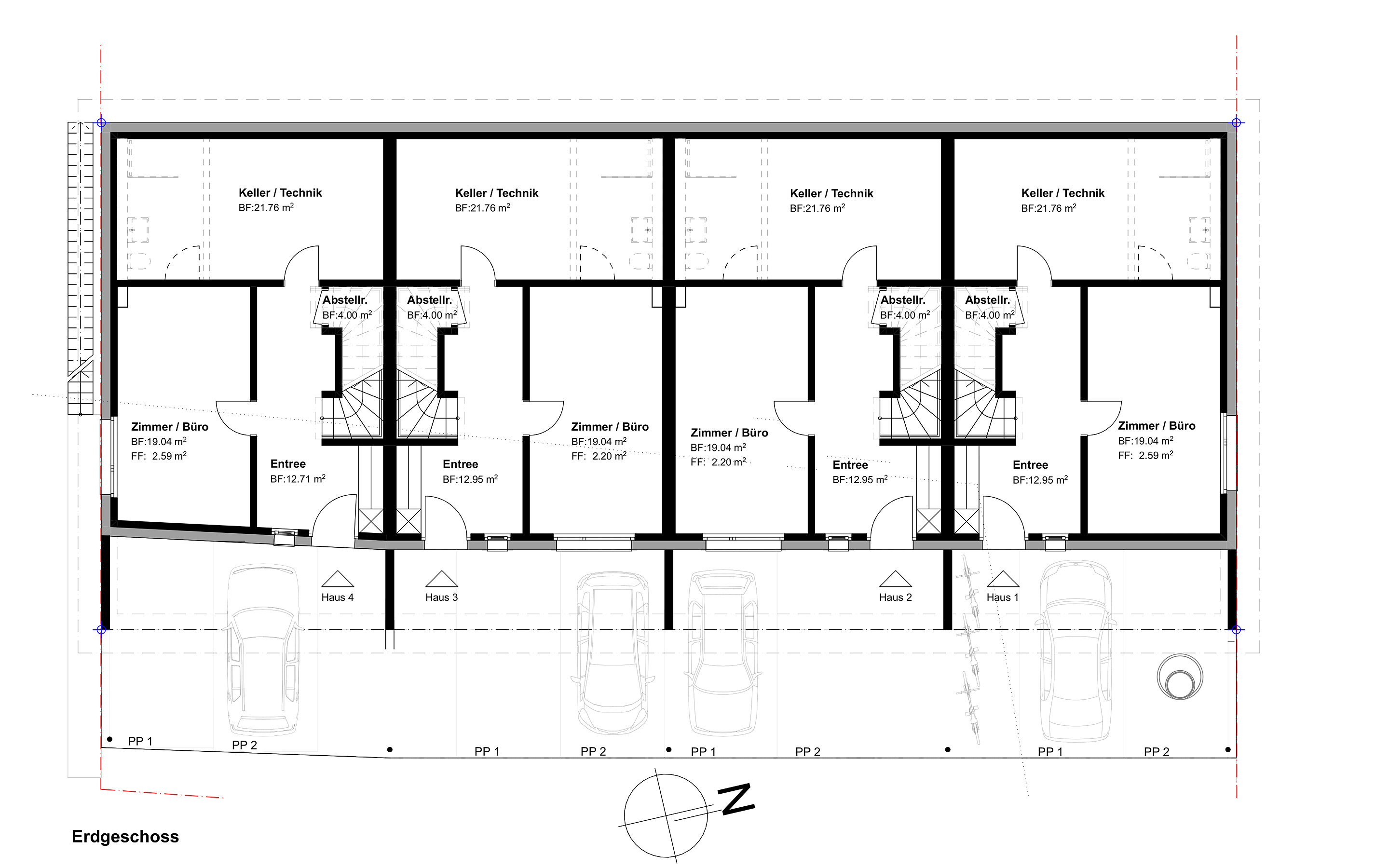 Vier Reihen-Einfamilienhäuser